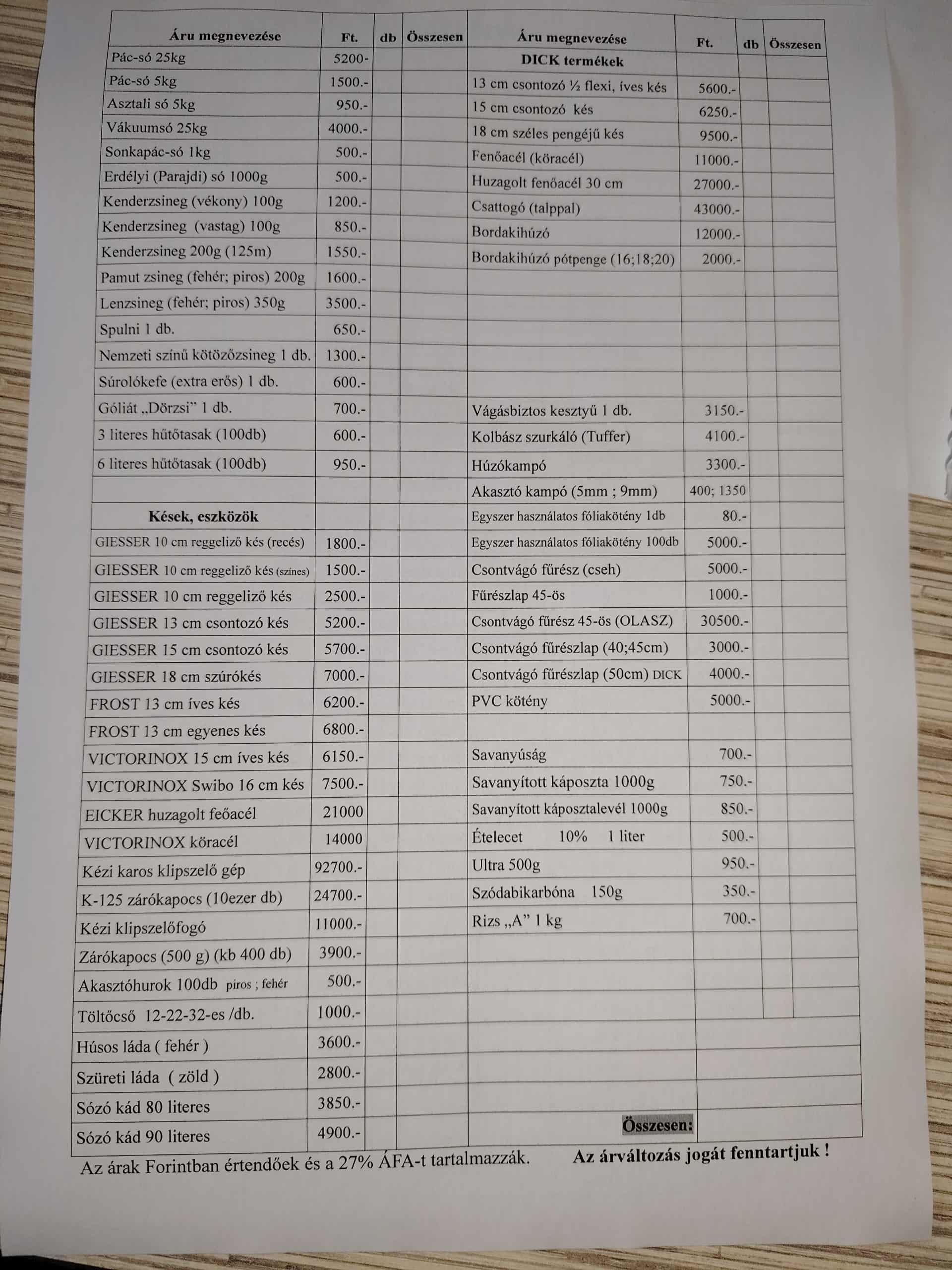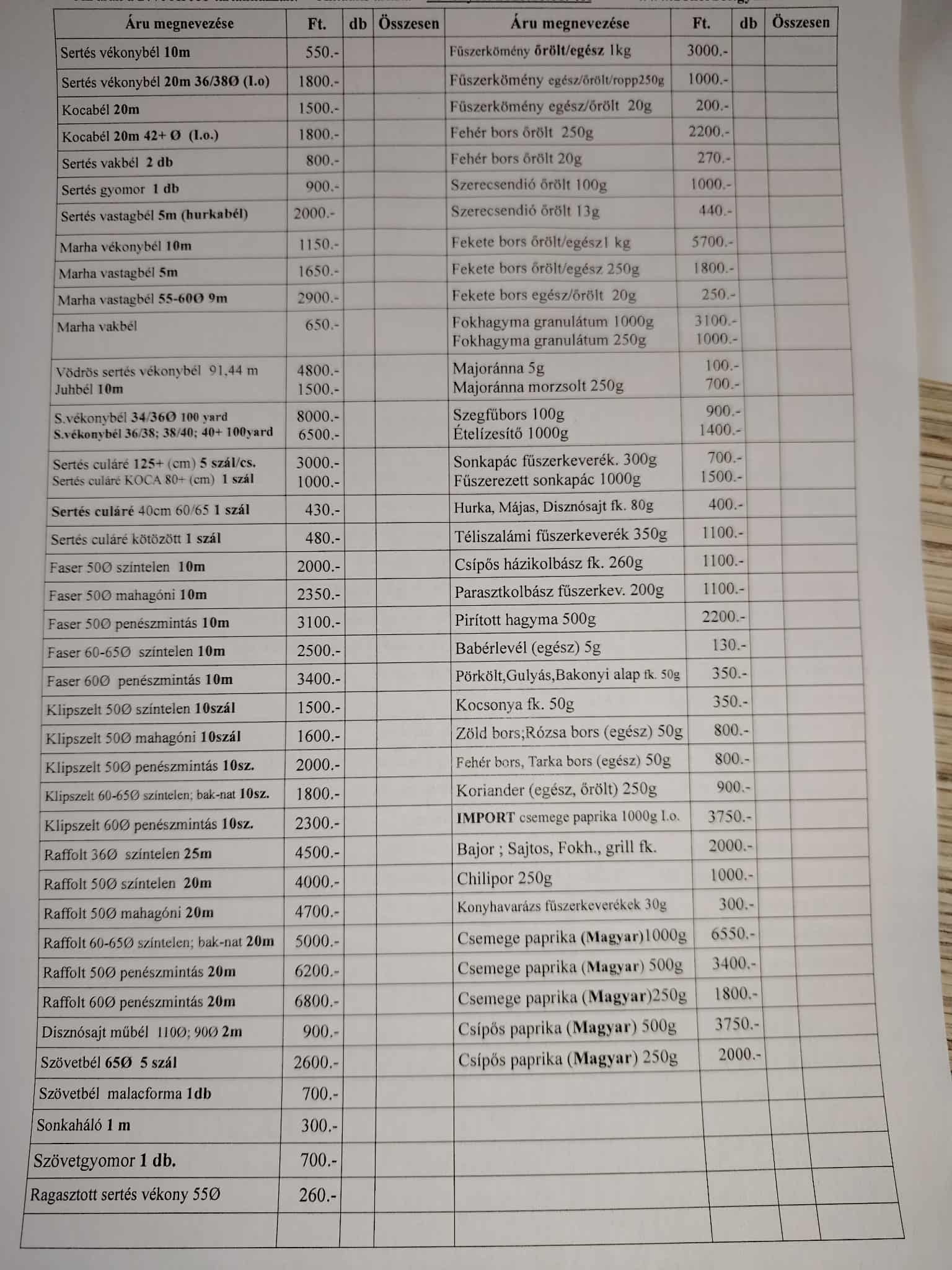 Az árak tájékoztató jellegűek. Az aktuális árakról kérem a megadott telefonszámokon érdeklődjenek mert előfordulhat, hogy egy-egy termék ára változik.